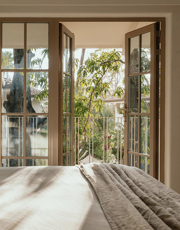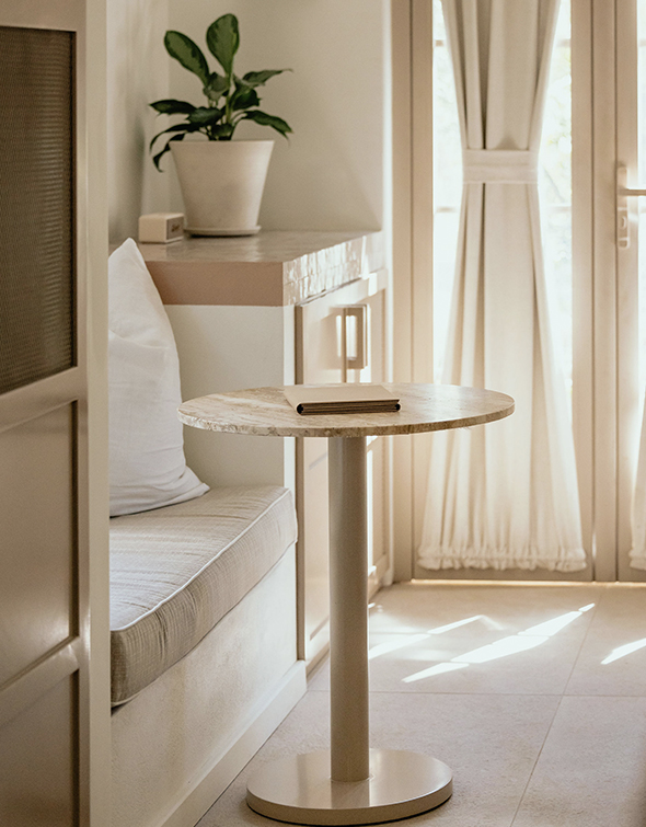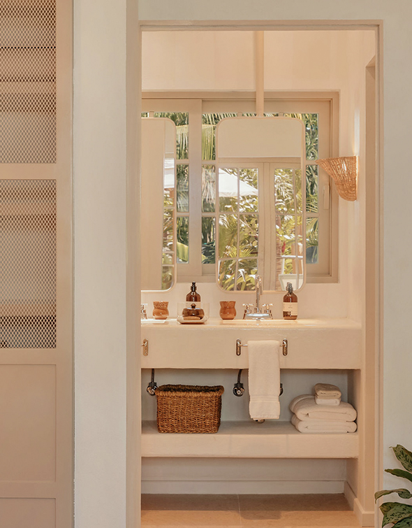 Our largest and most luxurious accommodation. The villa features two king bedrooms with ensuite indoor/outdoor bathrooms, and a spacious living area with two built-in twin daybeds. The space opens onto a covered terrace with dining and lounge areas, creating an easy flow between indoors and out. Thoughtfully designed for families or groups seeking privacy, comfort, and direct access to the beach.